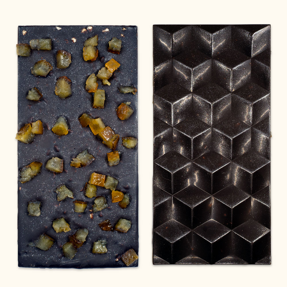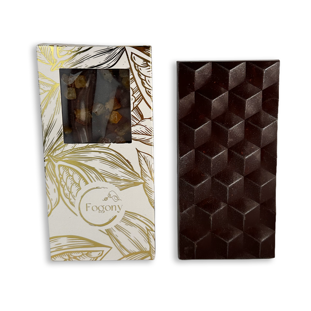 L’intensitat de la xocolata negra es fusiona amb la dolçor torrada de l’ametlla i el toc cítric de la taronja confitada. Una combinació clàssica i elegant, elaborada artesanalment al nostre obrador d’El Fogony.
